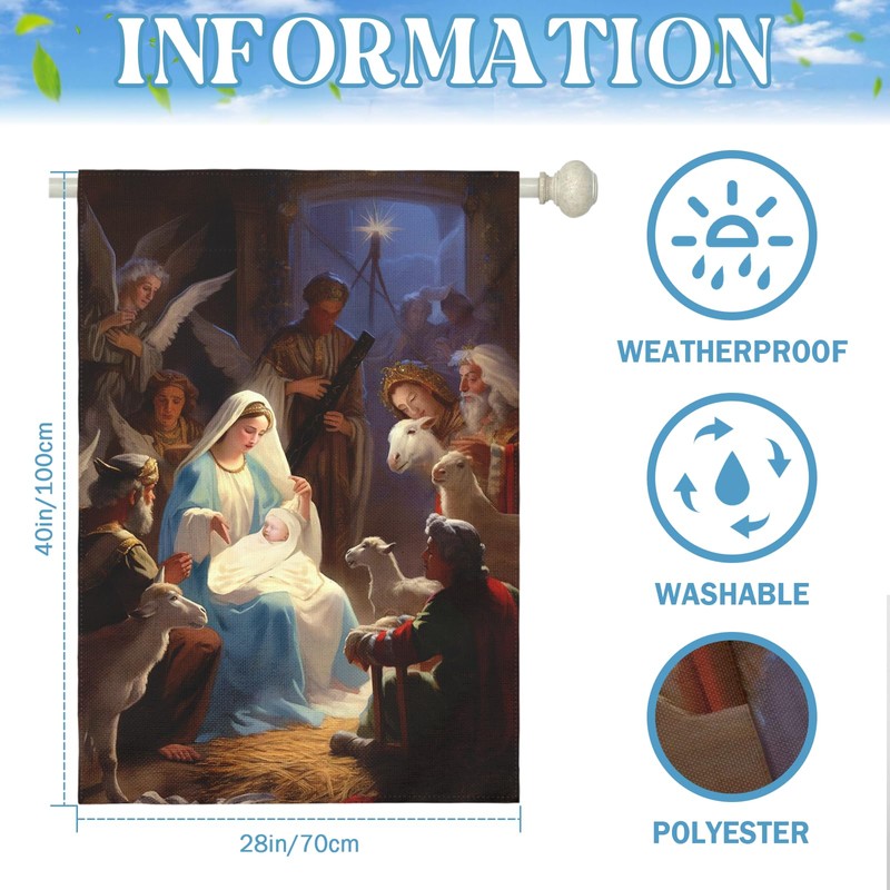 - Big Size: The nativity garden flag for outside is the large, big size (28 x 40 Inch) and fits all large size wall banner pole.
