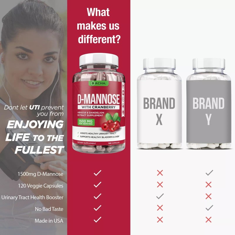 • High potency and powerful blend - Dacha d-mannose contains 1500mg of d mannose extract and a few other potent herb ingredients. Each bottle contains 120 easy-to-swallow capsules you can take anywhere, with the advantage of no unpleasant taste or smell and longer shelf life. Boost your health with a natural alternative to help keep your bladder healthy!