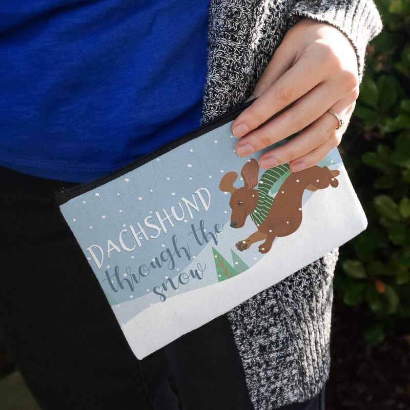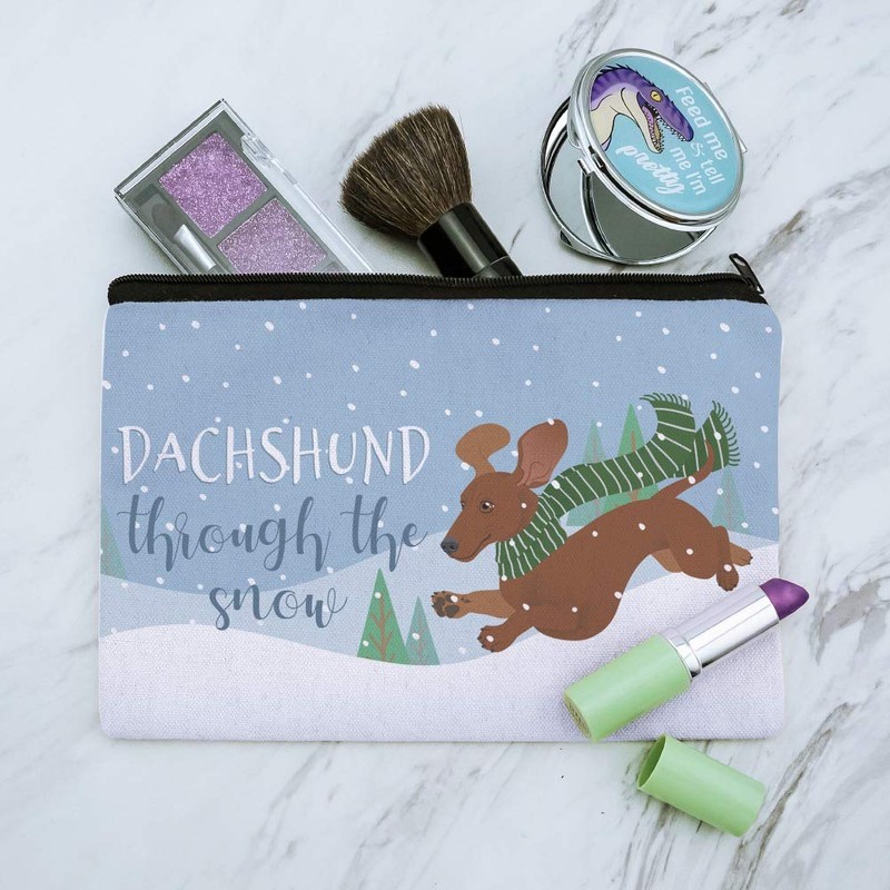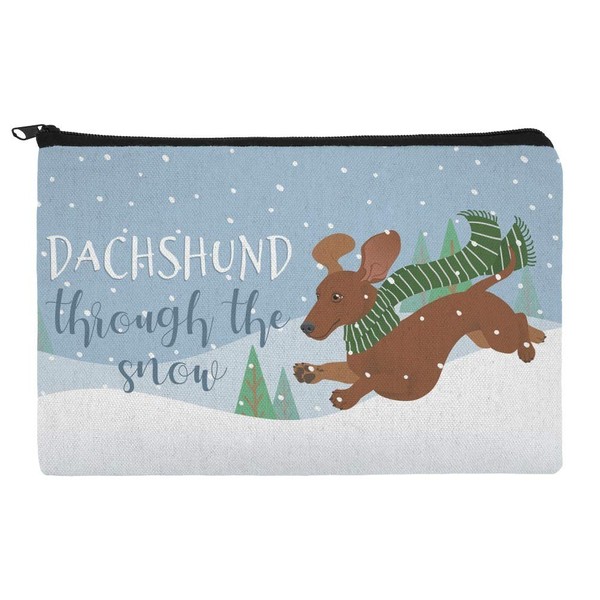 Dachshund Dashing Through the Snow Winter Christmas Makeup Cosmetic Bag Organizer Pouch