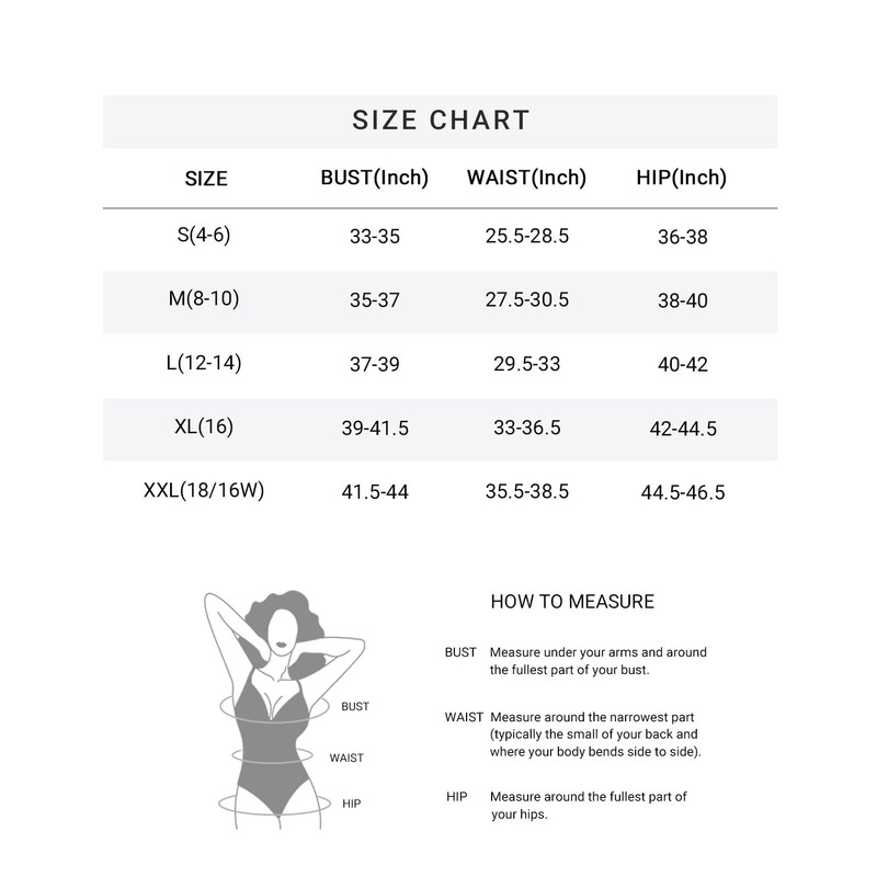 - Available in a variety of sizes:S (US 4-6), M (US 8-10), L (US 12-14), XL (US 16), and XXL (US 18). Please refer to the detailed size measurement guide to choose the suitable size.
