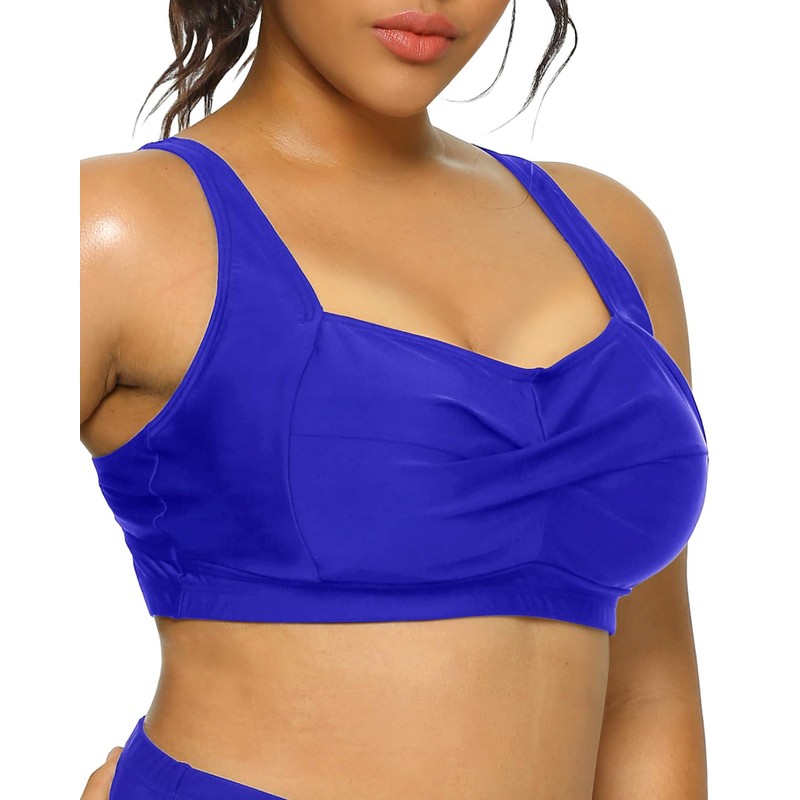 Daci Traje de baño para mujer, talla grande, parte superior de bikini push-up de cobertura completa, parte superior torcida frontal, traje de baño largo para busto grande, Azul Real, 16 Plus