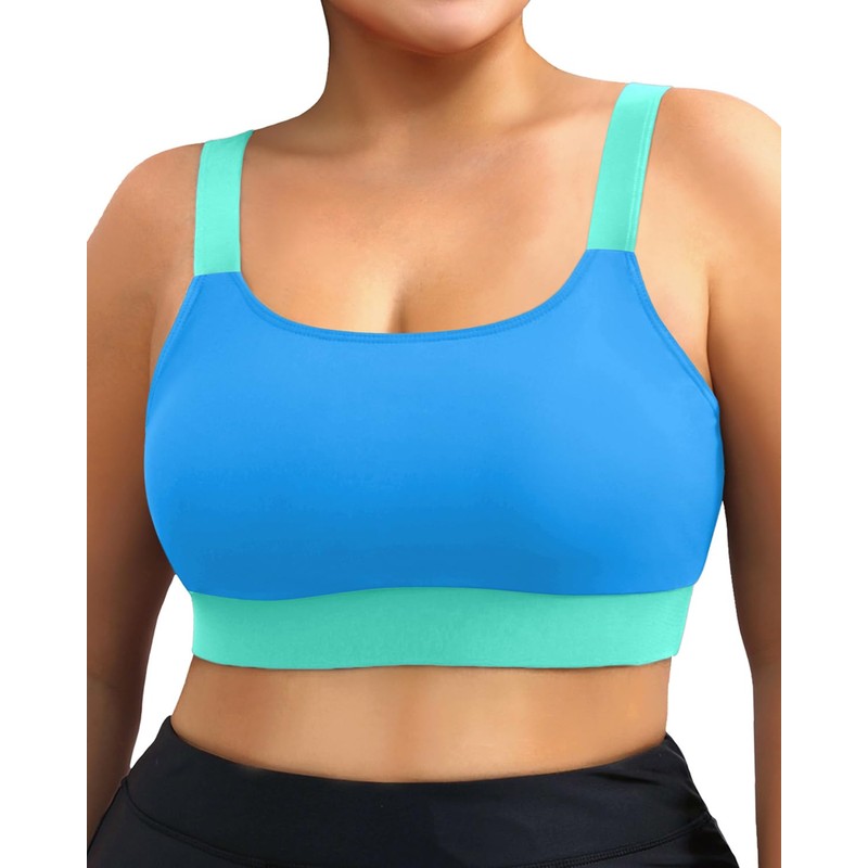 Daci Women Plus Size Sports Bra Bikini Top Only Push Up Scoop Neck Swim Top Full Coverage Bathing Suit for Large Bust, Blue and Green, 22 Plus