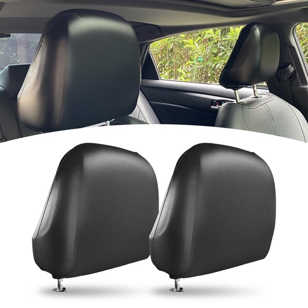 DACIRTY 2 PCS Full Wrap Rear Seat Headrest Cover, Comfortable Touch Stretch PU Leather Non-Marking Fit Waterproof Seat Headrest Protector, Washable Replacement Accessory for Cars (Black)