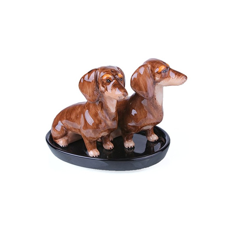 - Dachshund salt and pepper shaker set made of ceramic, 3 pieces, handmade and hand-painted