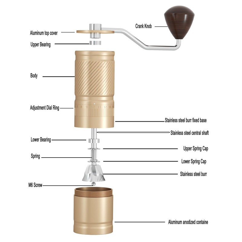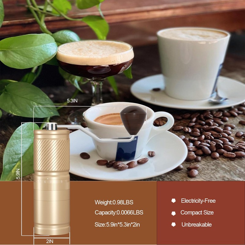 • EXTERNAL ADJUSTMENT RING: The intuitive adjustment setting mimics that of an electric grinder, Fixed with dual bearing and triaxial design, 420 stainless steel Hexagonal Burr, ensuring excellence and consistency in performance, Unlock a bright and rich taste.