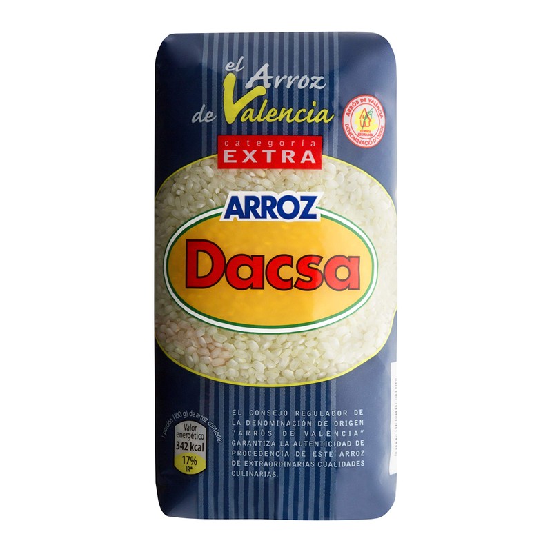 Arroz Dacsa is Arroz de Valencia. (DOP)Denominacion D’origen. This type rice is a typical food of Valencia, Spain and we offer it to you with the D.O. Rice of Valencia. This is the secret together with the special characteristics of the water of the Valencian Community to elaborate the paellas. Authentic Valencia rice very indicated for the different types of paellas Cooking Time: 18 minutes