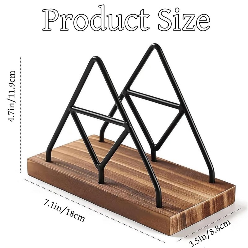 DACUAN Geometric Metal Wire & Solid Wood Triangle Napkin Holder Rack - Wooden...