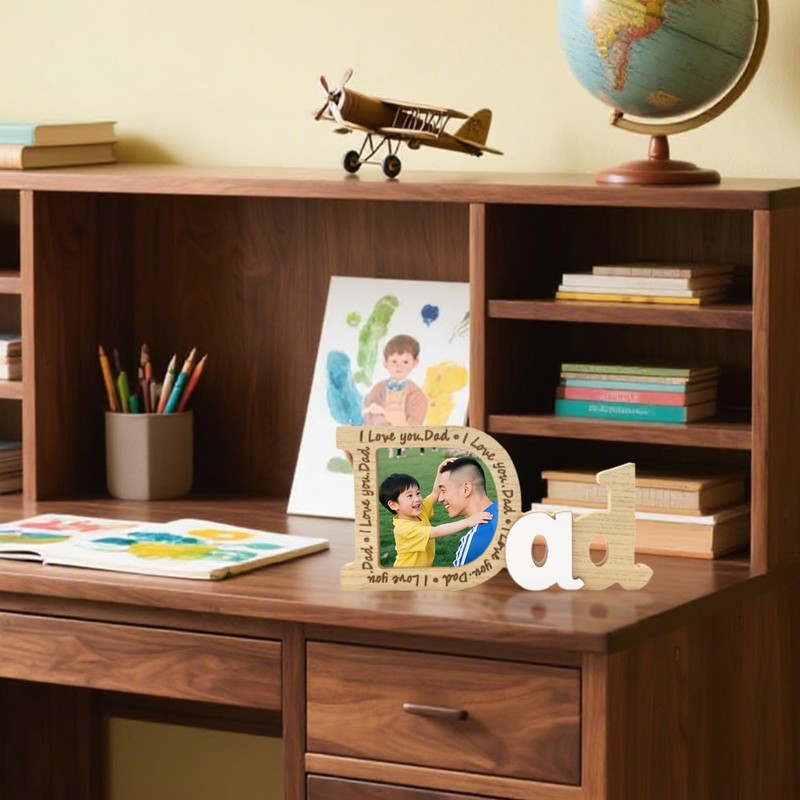 - 【"Dad" Letter Design】The capital "Dad" silhouette creates a modern yet sentimental display, with the photo slot integrated into the letter "D". A simple photo frame into a heartfelt daddy birthday gifts keepsake