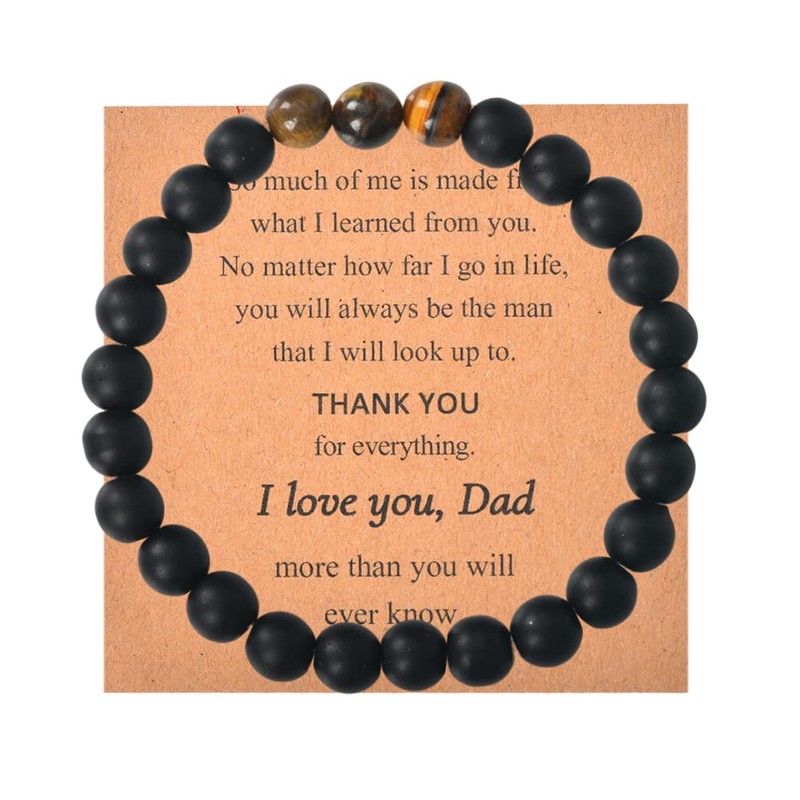 - Best Daddy Ever Gifts: Dads bracelet consists of matte black and tiger eye, both of which have implied meaning: matte black, as its color, represent quiet dad with his deep love, and tiger eye transimits your best wishes to him: safe and healthy, awesome birthday father day Christmas gifts for dad who wants nothing