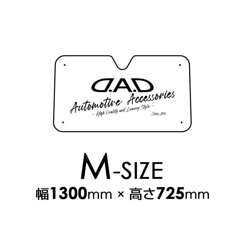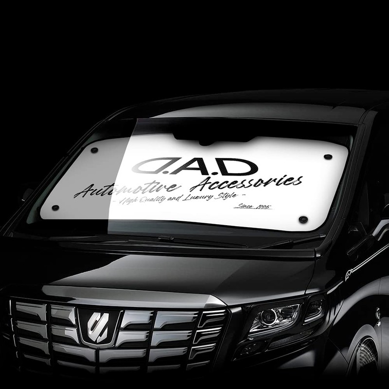- Introducing a new design for the popular sunshade. A stylish new model with a D.A.D logo and hand-painted letters on a white base. The product itself uses a matte finish that does not shine and gives it a mature and luxurious look. By reducing strong sunlight, it suppresses the interior temperature of the car, and prevents the interior color from fading due to UV rays