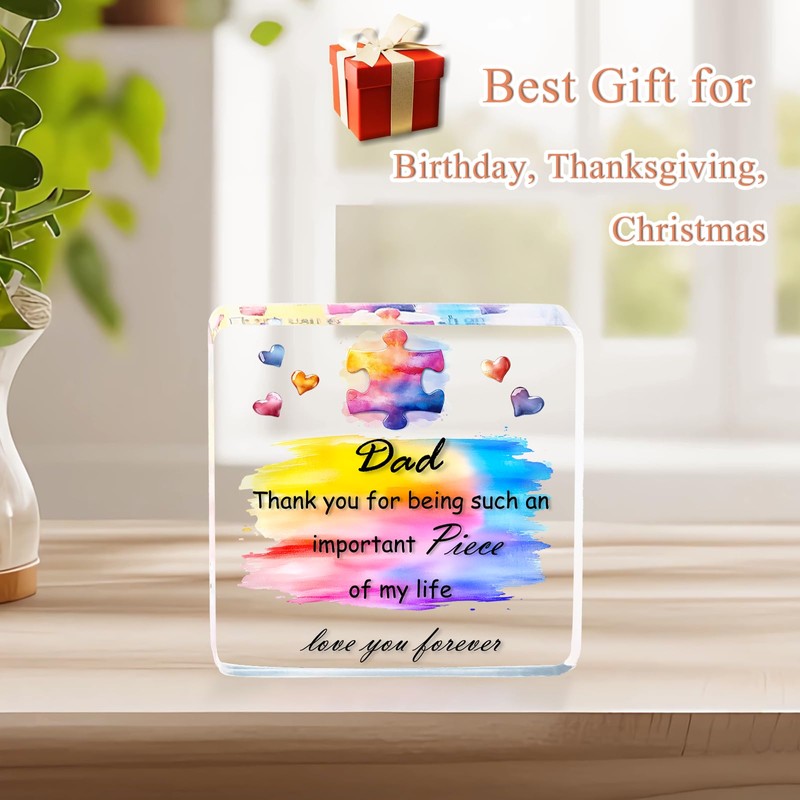 Dad Gifts from Daughter, Square Colourful Puzzle Acrylic Plaque Dad Birthday Gifts, Daddy Presents on Christmas Fathers Day Father Birthday Home Decoration