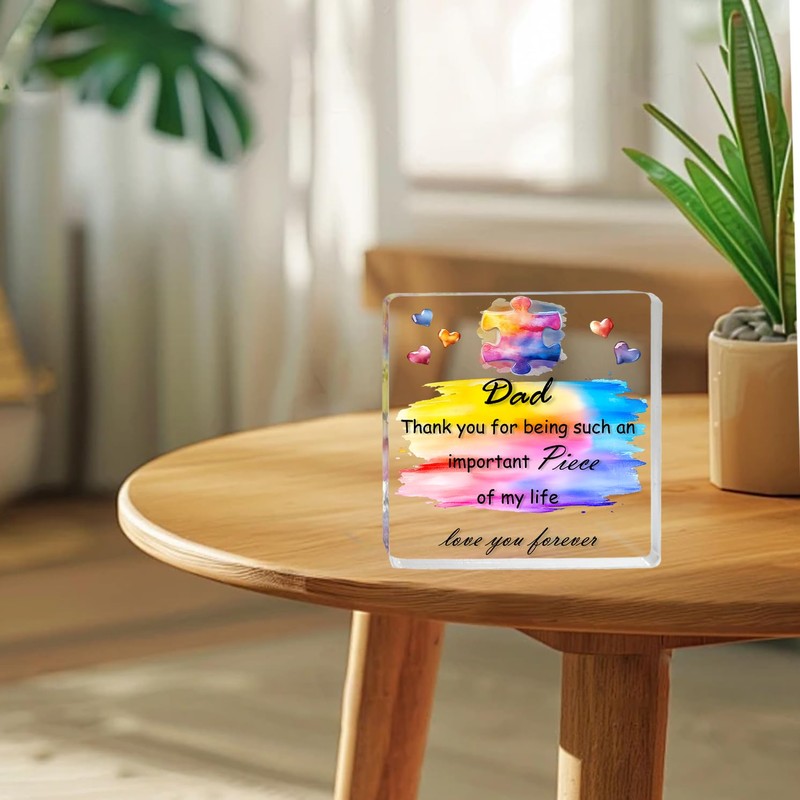 Dad Gifts from Daughter, Square Colourful Puzzle Acrylic Plaque Dad Birthday Gifts, Daddy Presents on Christmas Fathers Day Father Birthday Home Decoration