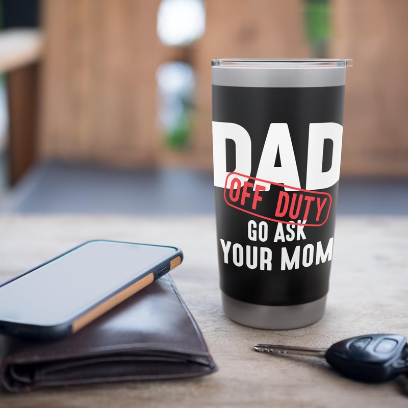 Dad Off Duty Go Ask Your Mom Funny Fathers Day Stainless Steel Insulated Tumbler