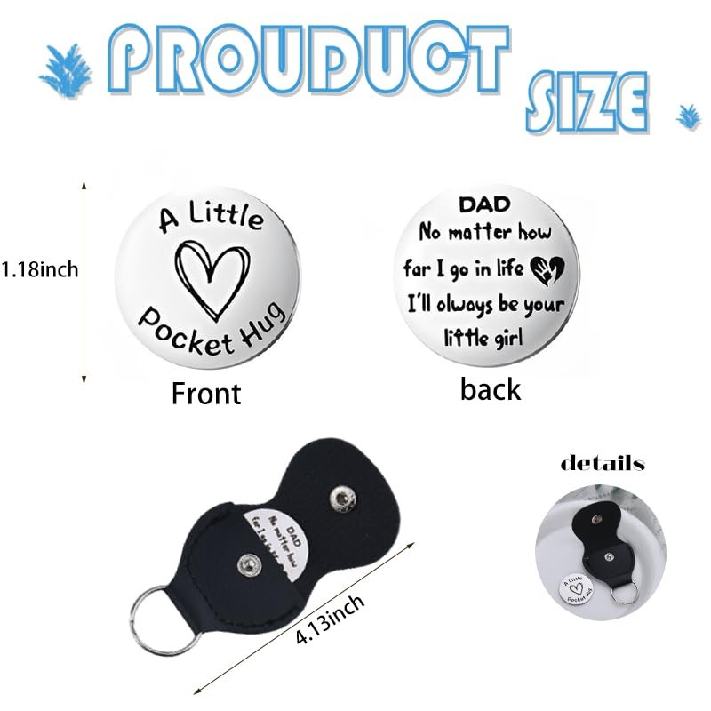 - Stainless Steel and Leather Material: The dad hug token made of premium stainless steel and pu leather keychain, sturdy and exquisitely, double sided pocket token is printed with heartwarming words, can keep many years as keepsake, thoughtful sentiment gift for dad father daddy remind him is important to you, dad daddy father gifts for men