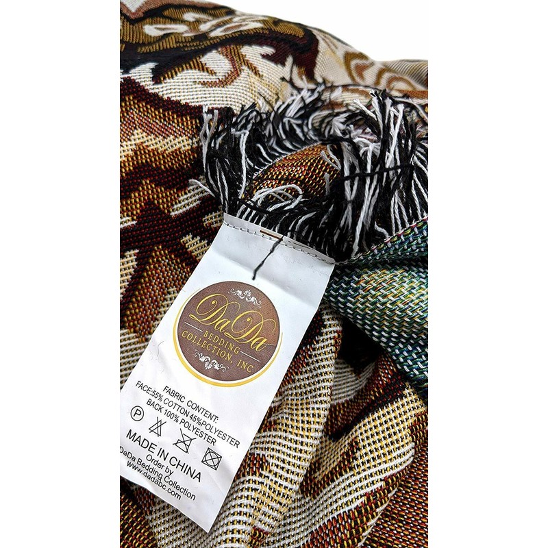 Decorate your home with our multi-purpose and versatile tapestry throw blanket in unique and beautiful woven stitched colorful golden floral designs by DaDa Bedding Collection.