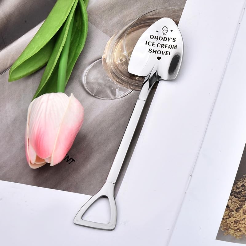 - Unique Design of Papa Father Gift for Dad's Daddy's Birthday Fathers Day Gifts: When dad uses this daddy's ice cream shovel engraved spoon, every scoop reminds your best father of your affection and adds joy to his dessert time, the shape of a mini snow shovel on this ice cream sundae spoon also adds a touch of charm and playful humor to every delightful scoop, suitable as funny gag gifts for new dad husband, perfect sweet ice cream lover gifts idea