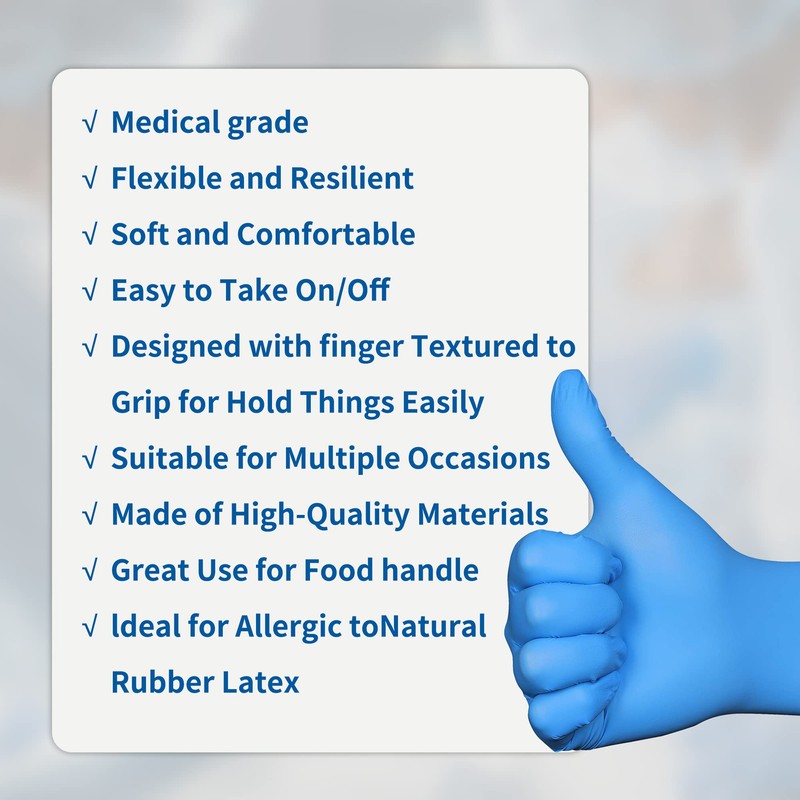 - The features about purism nitrile examination glove: chemical resistance, tear resistance, electrical resistance, tensile strength, durability, environmental friendly, flexibility and well fit, it doesn't cling to your arms and fingers.