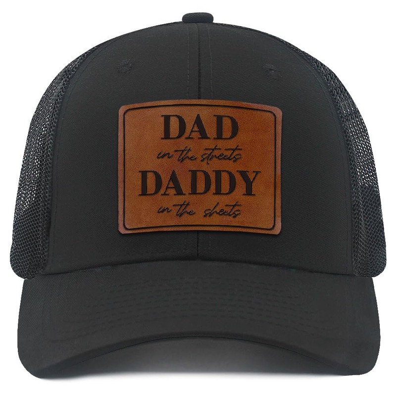 Daddy to Be Dad in The Street Daddy in The Sheets Hat Daddy Leather Patch Baseball Cap Gifts for Him Father's Day Birthday (Black Black)