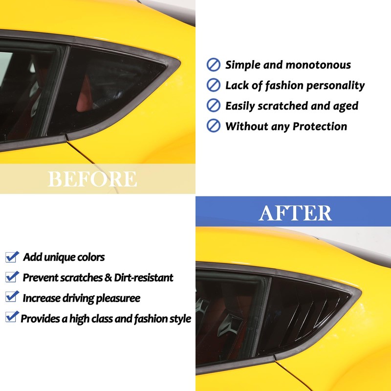 - 🚗【Features】— This rear side wondow louvers changes the ordinary look and adds a cool design to your Toyota Supra, making the car unique and unique. It can reduce your car interior temperature and protect your privacy.