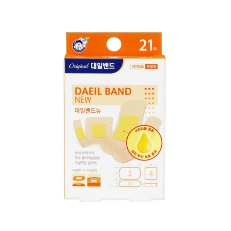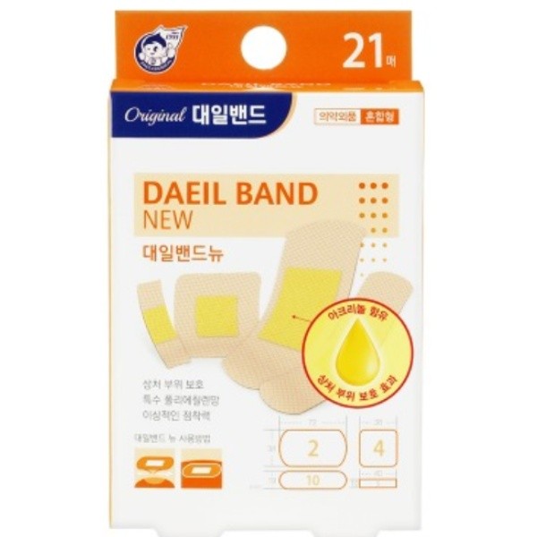 Daeil Band New Assorted Plasters 21 Count (Large, Small, Standard) Square 6ea
