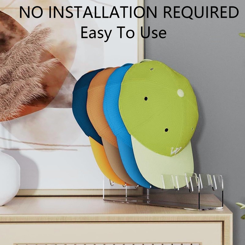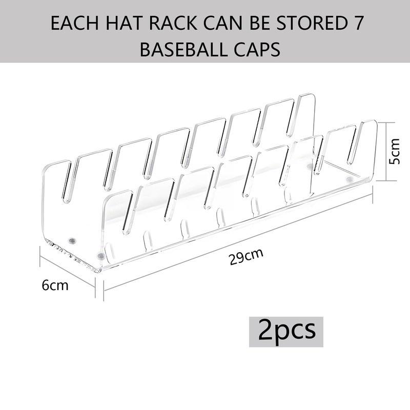 Daelesr Pack of 2 Acrylic Hat Stand for Baseball Caps, Hat Holder Cap Holder, Cap Organiser, No Installation, Storage for Hats, Bedroom, Closet, Office, Dresser, Transparent