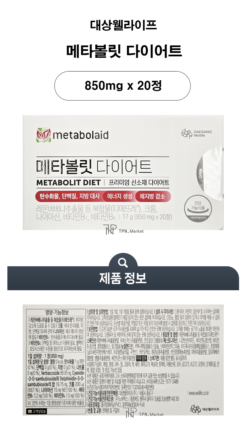 Daesang Wellife Metabolit Diet 850mg x 20 tablets / 대상웰라이프 메타볼릿 다이어트 850mg x 20정