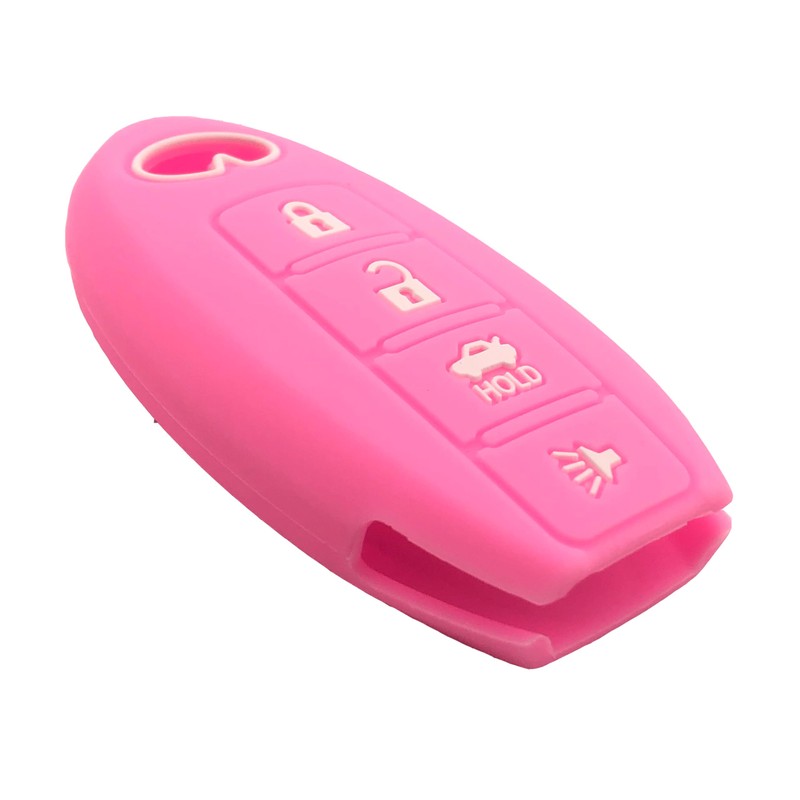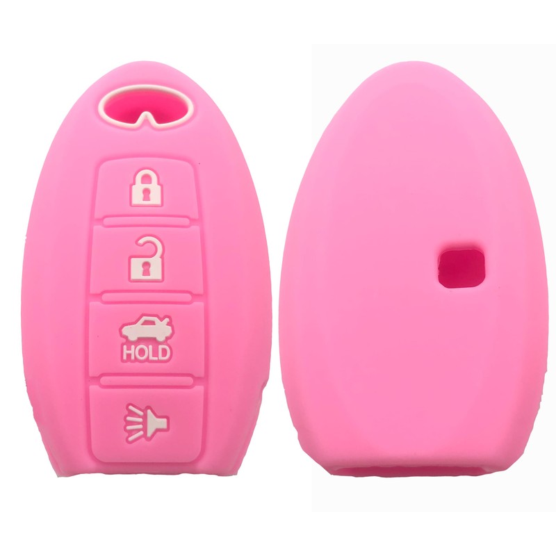 DAFATWJ Silicone Smart Remote Key Fob Cover Compatible with 2004-2019 4 Button Infiniti EX35 FX35 FX50 G35 G37 M35 M35H M37 M45 M56 Q40 Q50 Q60 Q70 QX56 QX60 QX70 (Rubber, Black+Pink)