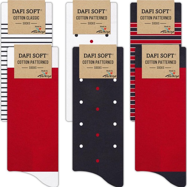 Dafi soft 6 Pairs Womens Socks, Stripe Dots Plain Assorted, Ladies Cotton Socks (UK 6-8, 6x Navy/Red Assorted)