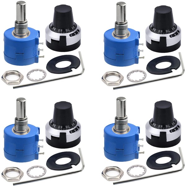 DaFuRui 4pcs 3590S-2-102L 1K ohm Rotary Potentiometer 10-Turn Wire Wound Precision Multi Turn Wirewound Potentiometer