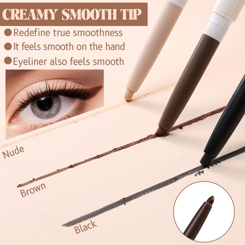 - TWO-TONE MATCHING EYELINER: Black eyeliner pencil, deep and mysterious, adding infinite charm. Nude Eyeliner Pencil blends naturally with your skin tone and contours your eyes for a no-makeup look. The combination of two colors meets all your makeup creativity needs.