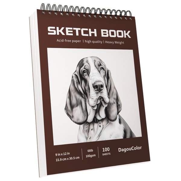 DagouColor 100 Sheets Spiral Sketch Book, Acid-Free Art Drawing Paper, Sketch Pad for Artists, 100gsm, 22.9CM X 30.5CM