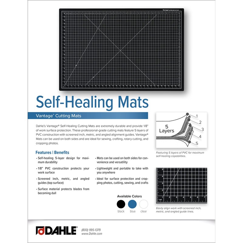 Dahle Vantage 10694 Premium Self-Healing Cutting Mat, 36"x48", 1/2" Grid, 5 Layers for Max Healing, Perfect for Crafts & Sewing, Blue
