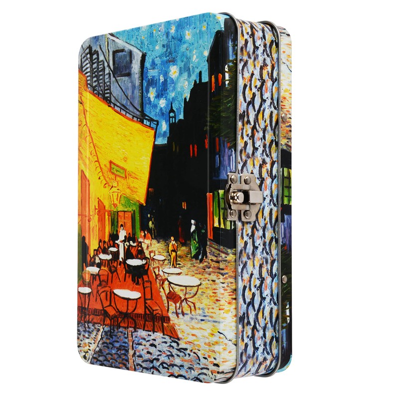 DaHo Metal Storage Box with Hinge for Office, School, Home, Makeup, Arts & Crafts and Accessories (Cafe Terrace At Night)
