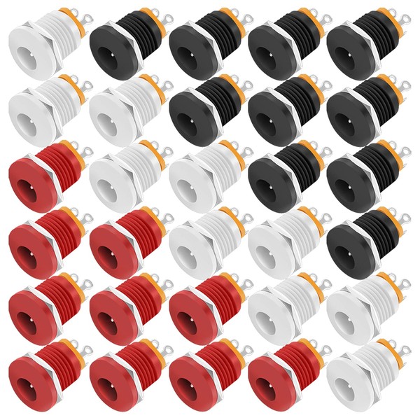 - Package includes: 30pcs 2.1 x 5.5mm DC Barrel Jacks with Hex Nut, Red White Black 10pcs each.