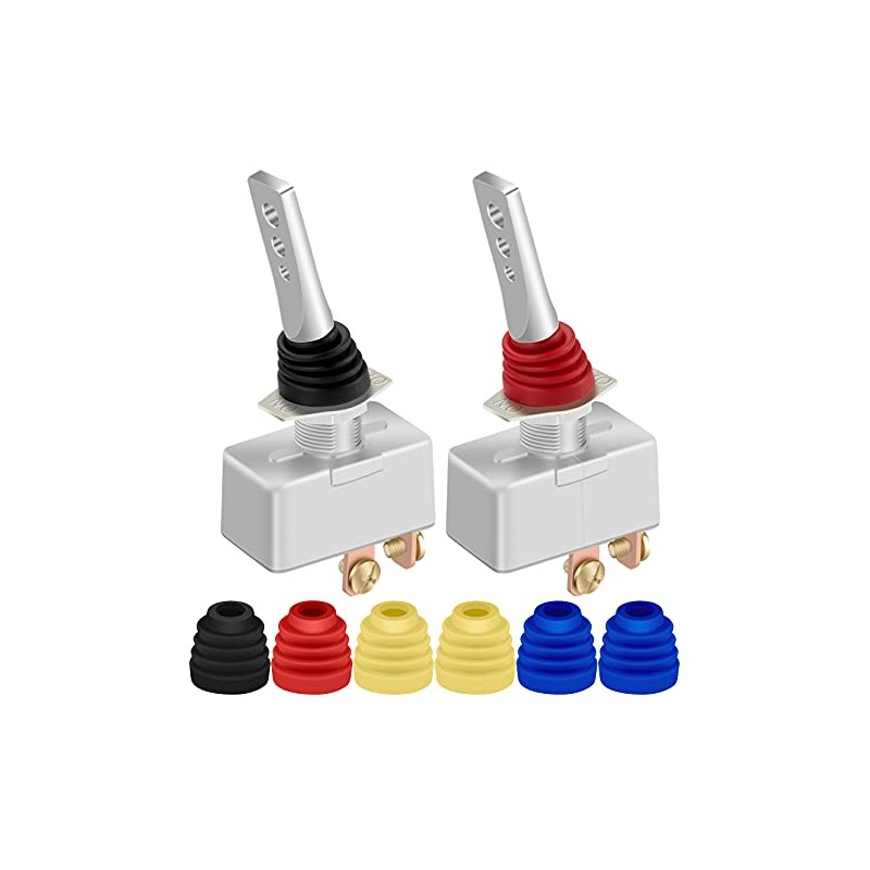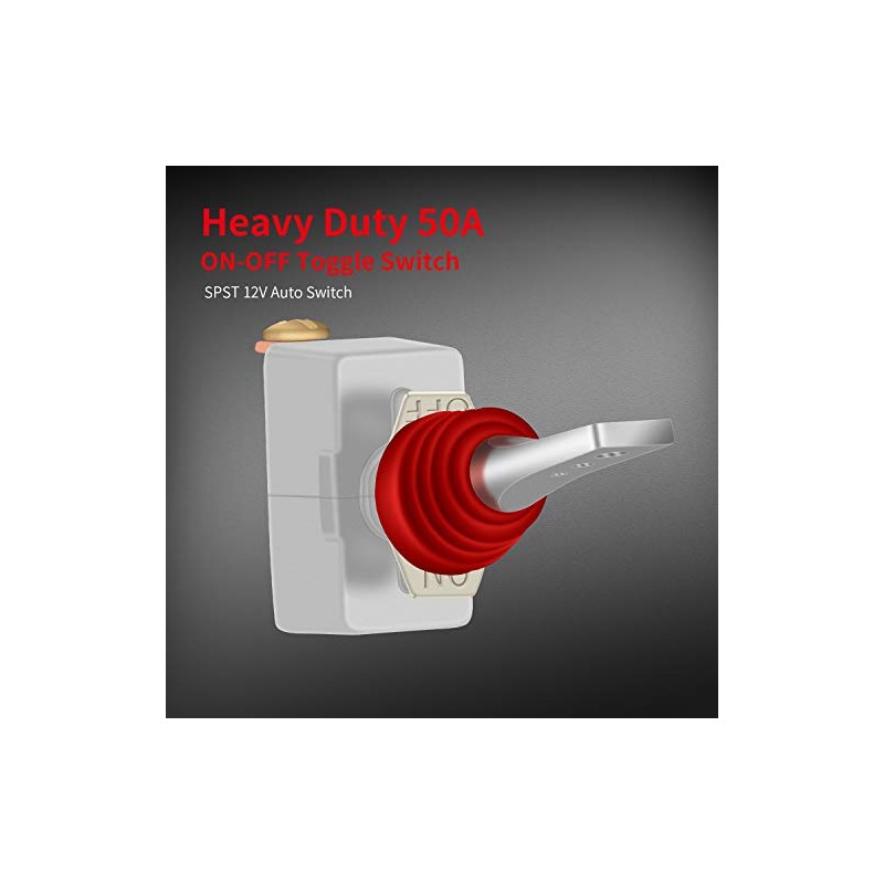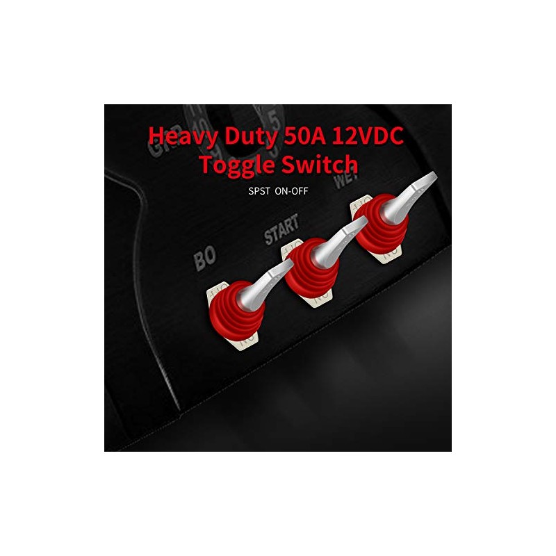 DAIERTEK DaierTek 12 Volt 50 Amp Heavy Duty Toggle Switch 12V ON Off IP65 Waterproof Switch 2 Pin with Rubber Boot Cover (Black Amber Red Blue) -2pcs