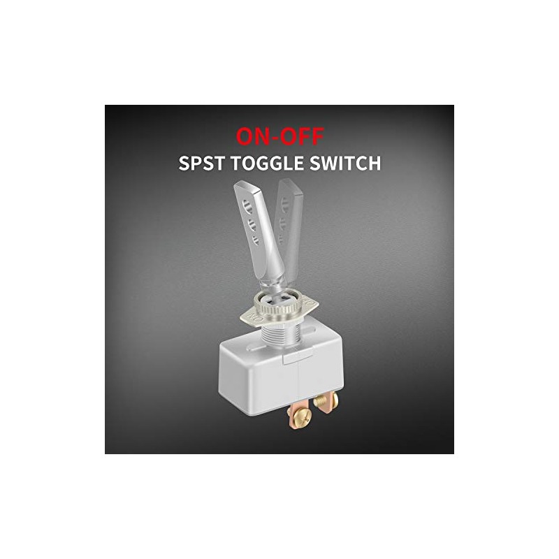 - ON OFF Toggle SwitchThe toggle switch is 2 Pin SPST (Single Pole Single Throw) Version, Easy to toggle ON/OFF.