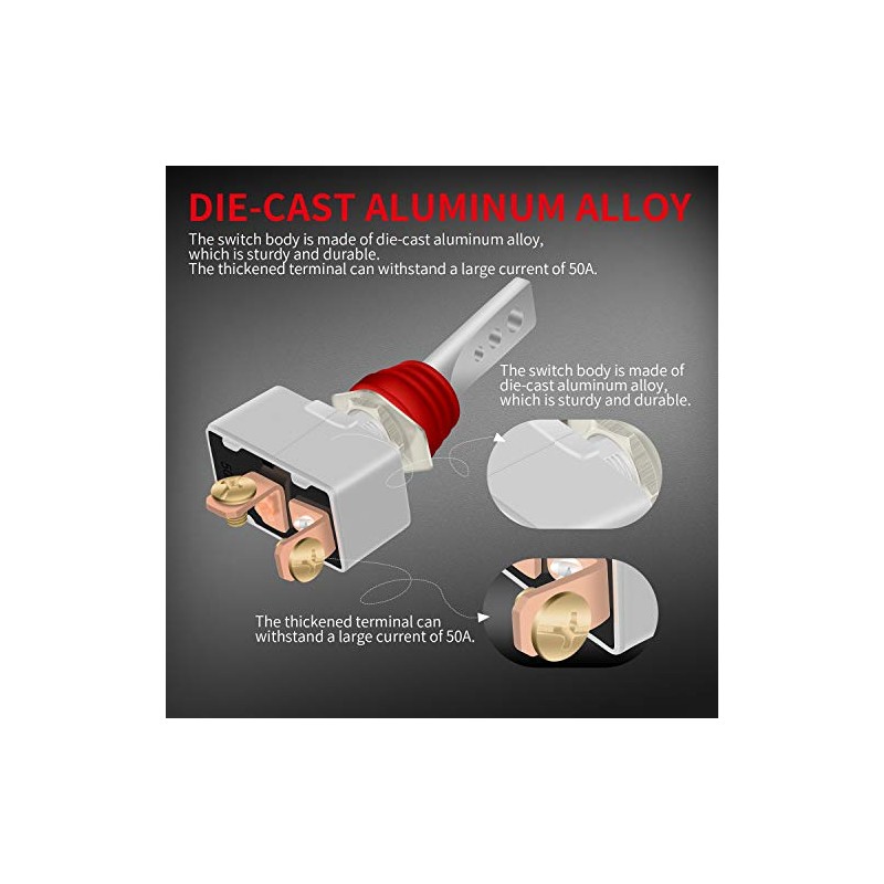 - Aluminum HousingThe whole housing of this toggle switch is made of Aluminum, Durable enough. And the switch with 12mm panel mounting hole Dia.