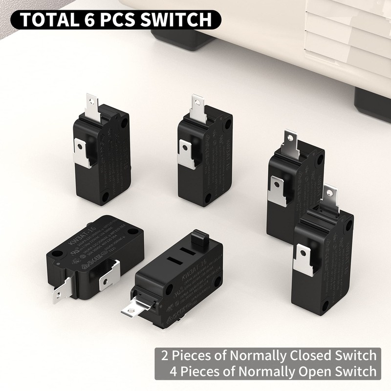 - Microwave Switch: Total 6 pcs of KW3AT-16 microwave door switches, 2 pcs normally closed and 4 pcs normally open.