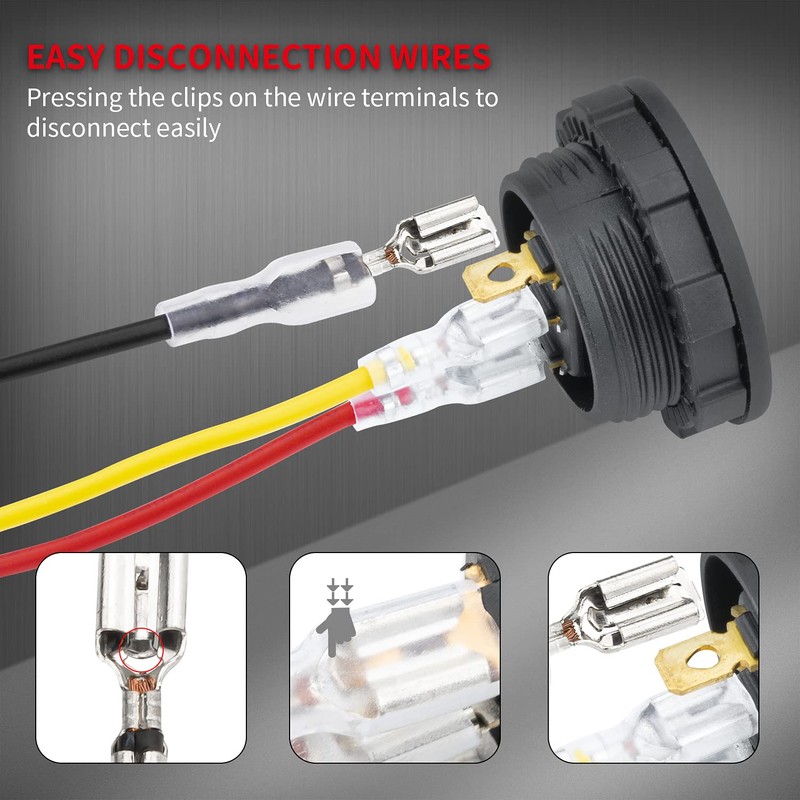 - Function: The round rocker switch has 3 pins, and SPST (single pole single throw) design with a set of jumpers, easy to turn ON/ OFF. The rating is 20A 12VDC.