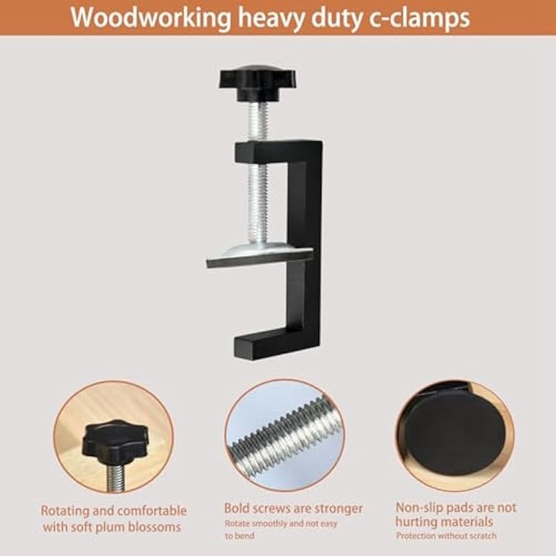 - Heavy Duty C-Clamp: duty C clamps is precision cast from high-quality Aluminum+carbon steel,provides reliability,rust-proof,wear resistance and resistance.Face frame stiles can be tightened,aligned,pre-drilled and fastened while the clamp remains in its position.