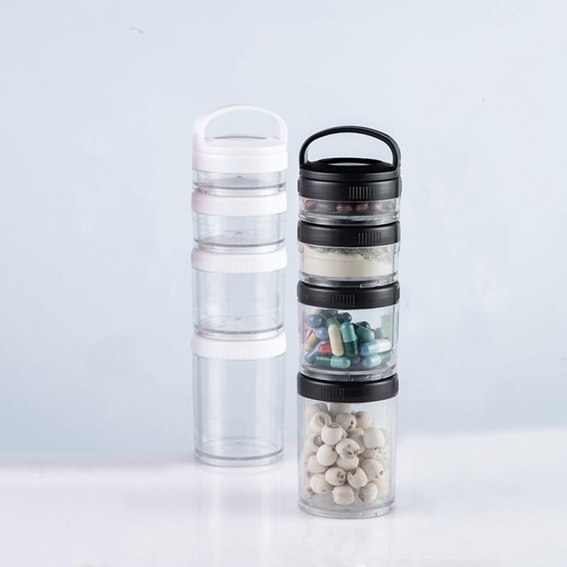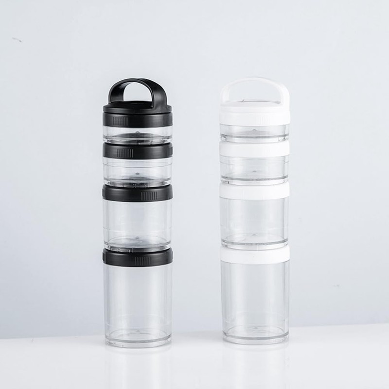 Daiilg Stackable Snack Containers for Kids and Adult, 4 Stackable Snack Cups for School and Travel Transparent Black Easy to Use