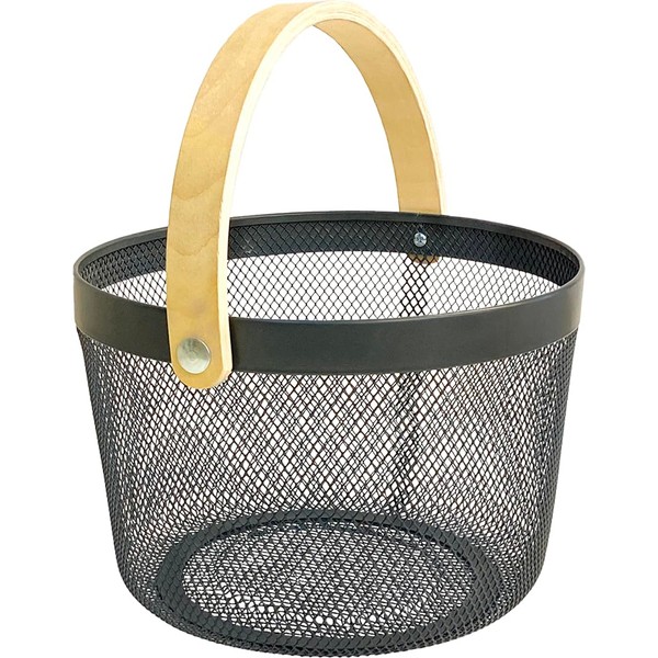 Daikai Linie Storage Iron Basket Wood Handle Round Gray