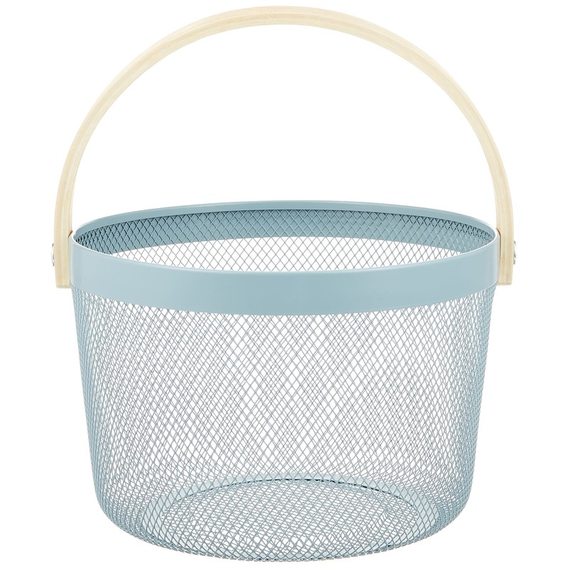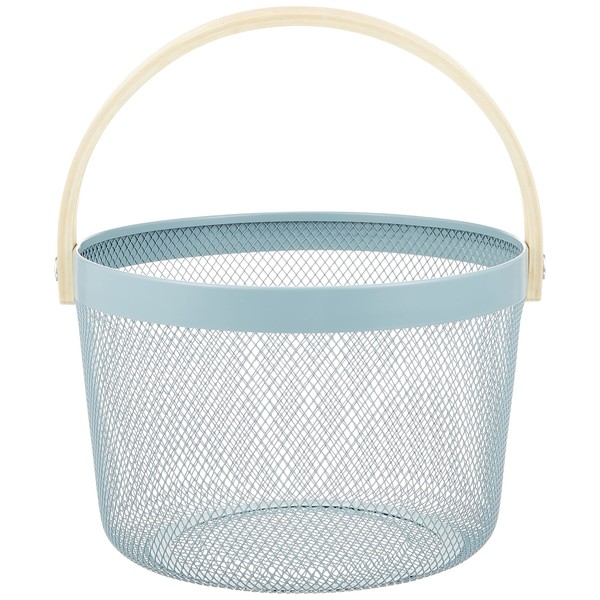 Daikai Linie Storage Iron Basket, Wood Handle, Round, Light Blue
