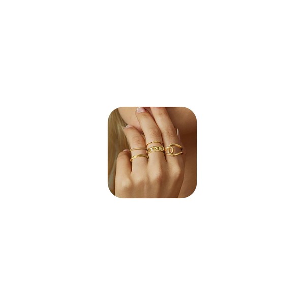 - RINGS FOR WOMEN SET:5 pairs of chunky rings in different designs and Adjustable size.The gold color is nice and shiny,The designs are beautiful, well-made and sturdy.Perfect for any occasion and outfit.The delicate and expensive-looking stackable rings add elegance and charm to your look