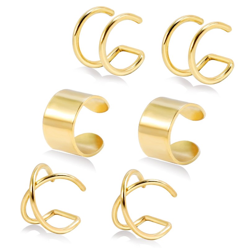 - GOLD EAR CUFF SET: 3 Pairs (thin ear cuffs, simple cross cuff earrings, cute double lines ear cuff earrings) Classic, retro and modern styles are intertwined, creating a cool punk look. Perfect for everyday wear. The ear cuff earrings measure 8-8.5mm in inner diameter and 6-7-8mm in height