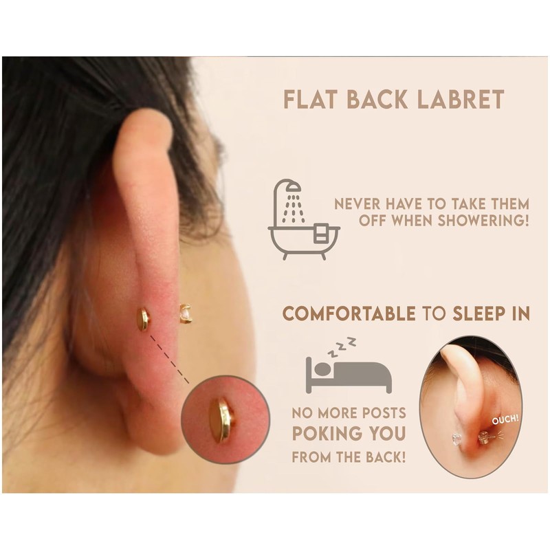 - EASY TO USE - The flat back screw on is very easy to use and extremely comfortable to wear. The flat back design is crucial and ensures a secure and comfortable fit, especially for cartilage piercings and helix piercings. Our small earrings can be worn elegant or casual for any occasion. They can be used for the first, second and third ear hole.