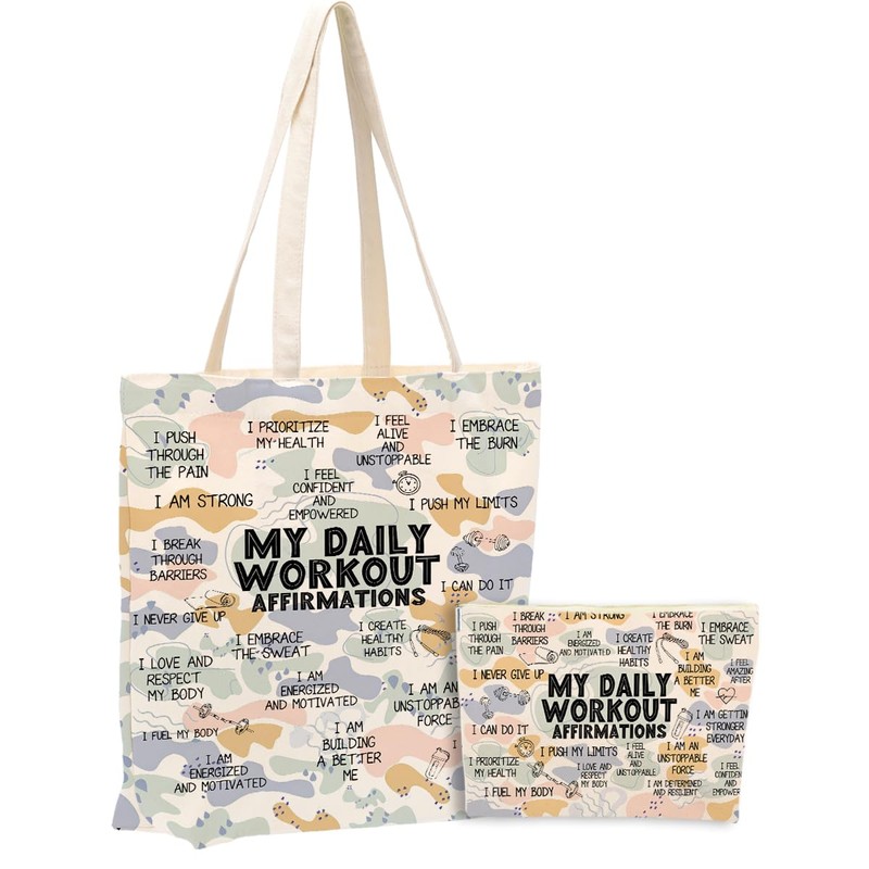 Daily Affirmations for Women, 2PCS Cosmetic Bag Canvas Tote Bag Beach Bags with Pocket Makeup Bags,Workout Gifts for Women Inspirational Mental Health Gifts for Female Friend Birthday Friendship