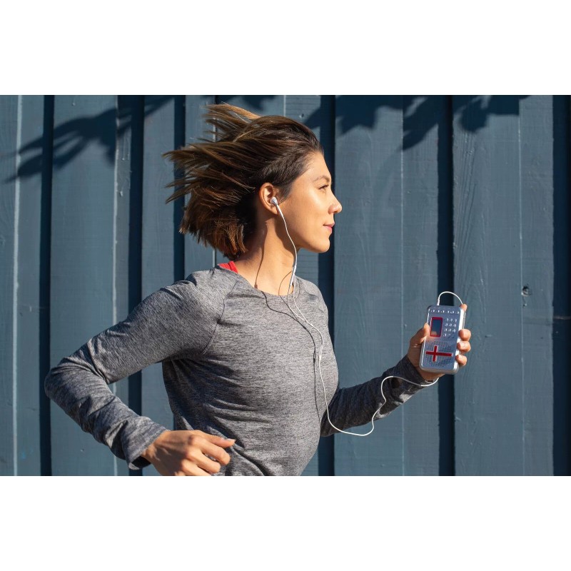- Rechargeable battery enables 10 hours of continuous play after each charge. Both an earphone and a built-in speaker enable convenient private listening, family listening, and small group listening anywhere you go.