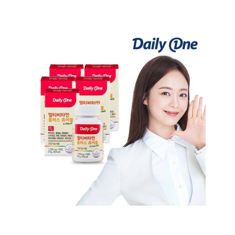 Daily One Multivitamin Plus Chewable Children's Multivitamin 1,250mg / 데일리원 멀티비타민 플러스 츄어블 어린이 종합 비타민 1,250mg X 60정 5통