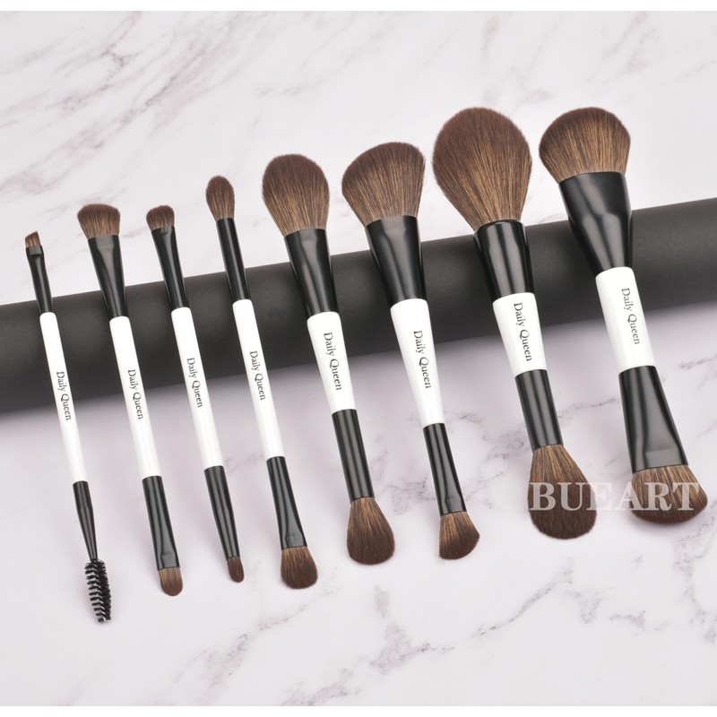 Daily Queen Portable Makeup Brush Set 8pcs Dual Kabuki Powder Concealers Eye shadows Blush Eyeliner Eyebrow Contour Eye blending Brushes